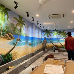 tranh vẽ tường quán ăn vặt tại trường trinh hà nội